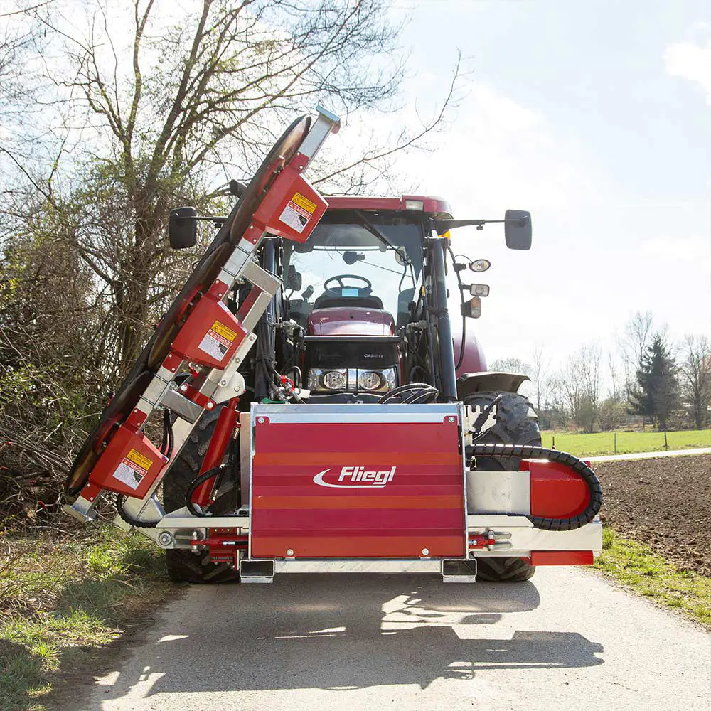 • Ausleger seitlich um 1200 mm ausschiebbar, somit können Sie am Straßenrand fahren und im Auslegerbereich schneiden