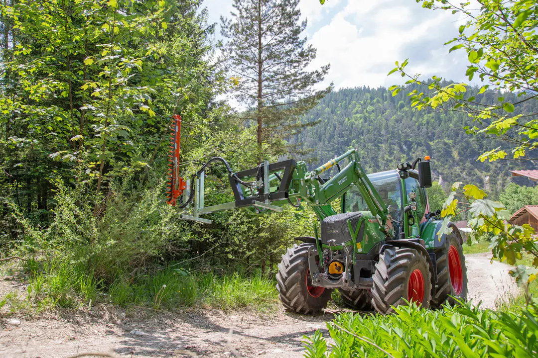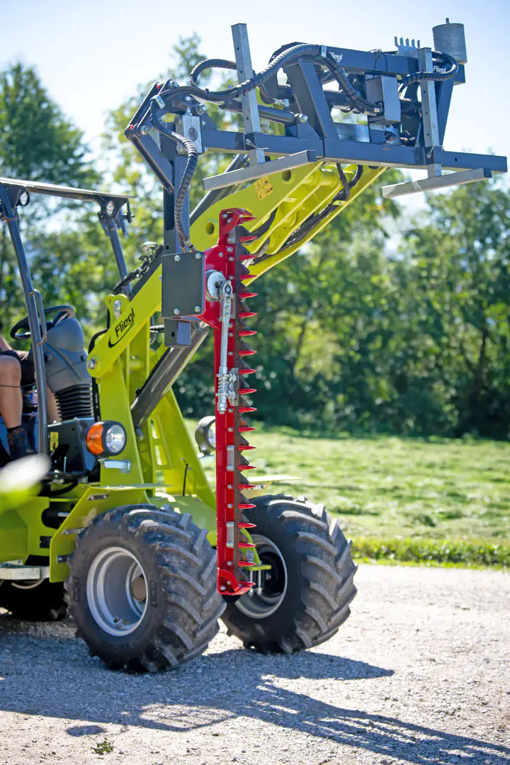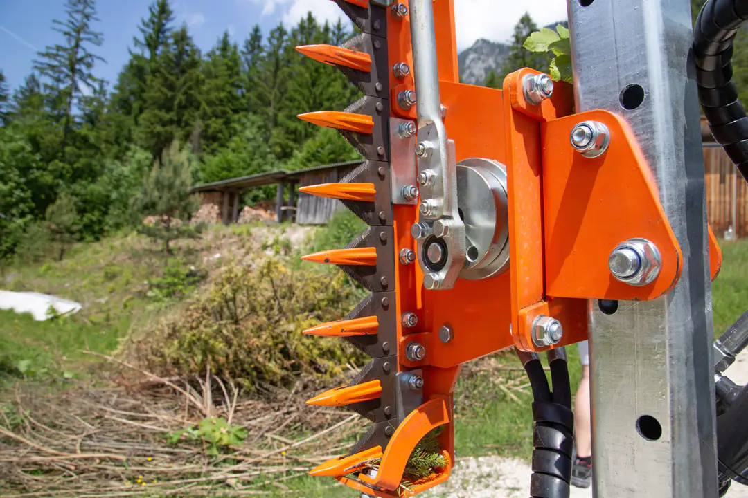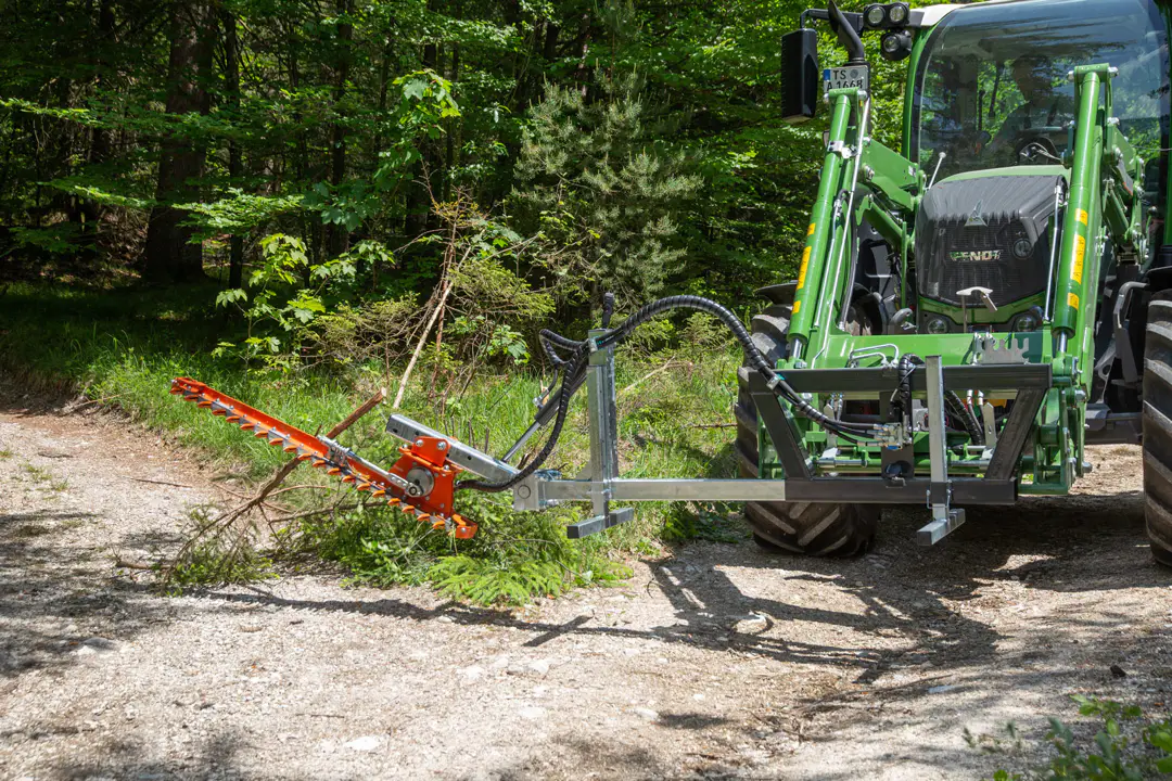 Ausleger seitlich um 850 mm hydraulisch ausziehbar bei 180° Schnittwinkel