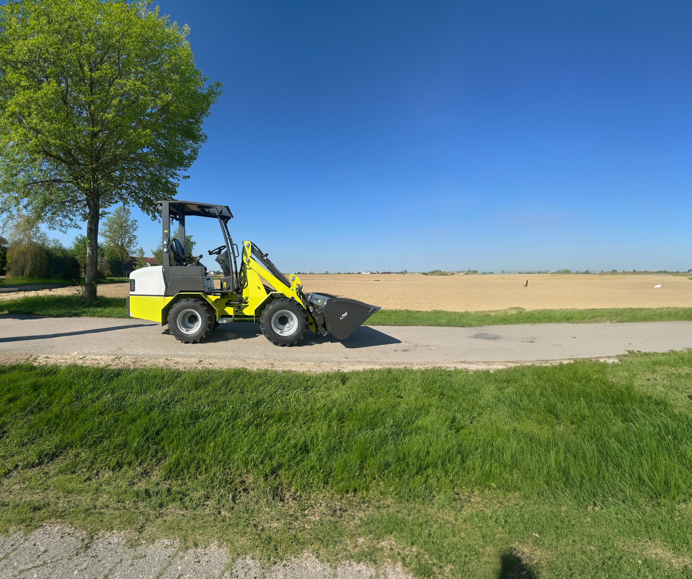 Unser Hoflader besticht durch seine große Leistung auf kleinem Raum. Mit Euronormaufnahme.